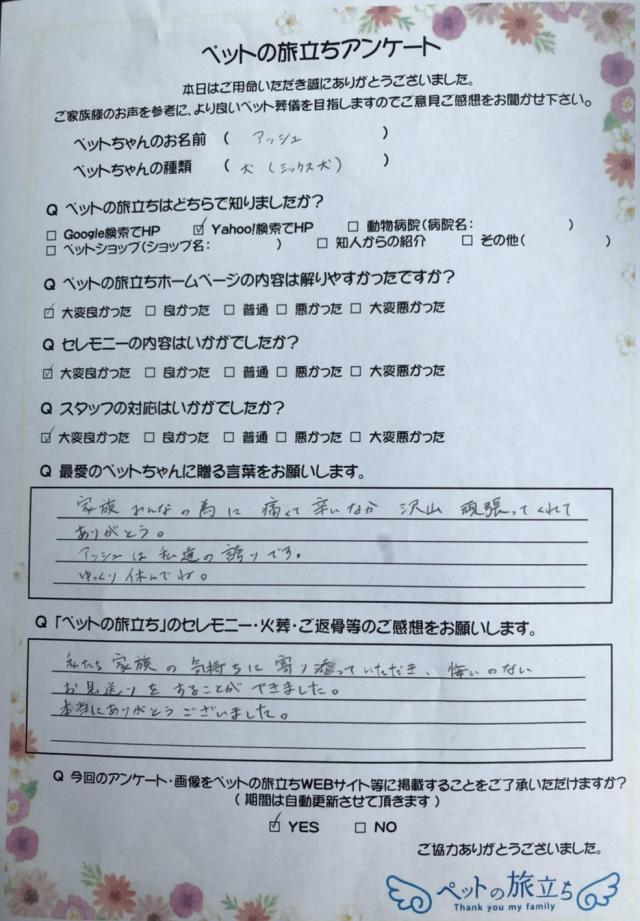 旅立ちプラン アッシュちゃん 犬 MIX 享年6歳 男の子 【アッシュちゃんへ】 家族みん